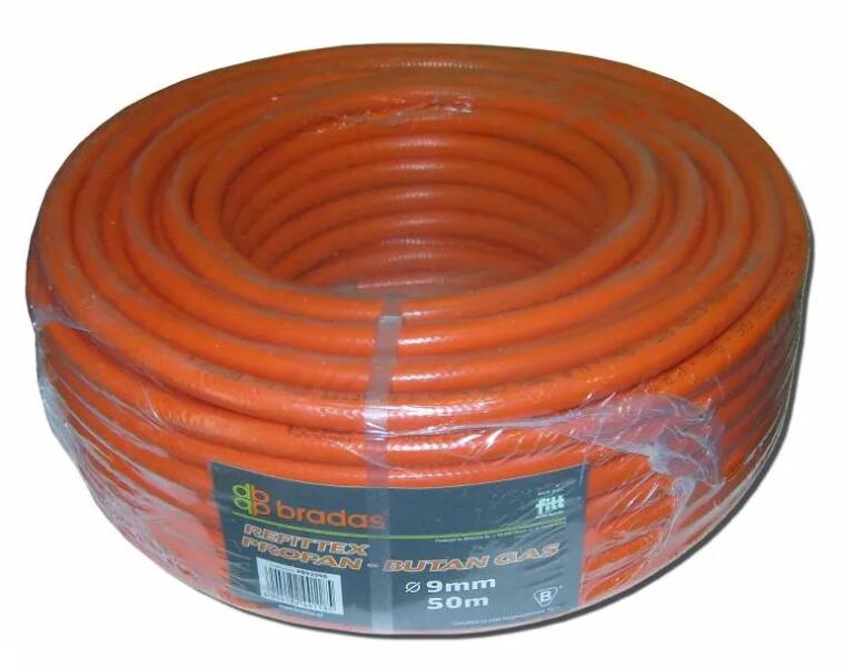Propán – Bután gáztömlő 10 mm Belső átmérője 10 mm Üzemi nyomás: 20 BAr Szín: belső-fekete, külső: narancssárga A PB tömlő fontos tartozéka a PB palackoknak, forrasztó eszközöknek, melegítő készülékeknek. Kiváló minőségű speciális anyagból készült. PVC textilháló megerősítéssel, narancssárga színben. LEGKISEBB RENDELHETŐ MENNYISÉG 1 M! AZ ÁR 1 FOLYÓ