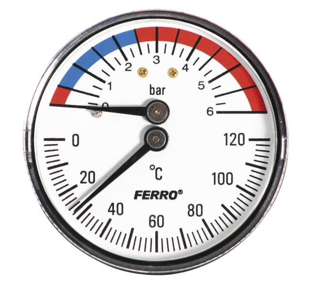 - termomanométer hátsó csatlakozású 0-120 °C, 6 ba - hátsó csatlakozó 1/2 - burkolat: nagy szilárdságú ABS műanyag - karcálló kemény fedőlap termomanométer hátsó csatlakozású 0-120 °C, 6 ba hátsó csatlakozó 1/2 burkolat: nagy szilárdságú ABS műanyag karcálló kemény fedőlap tárcsa: porfestett alumíniumm hőmérőtartomány: 0-120 °C nyomásmérő tartomány: 0-6