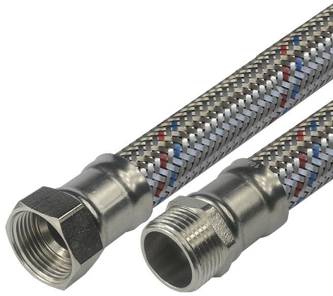 A rozsdamentes acél vízcsatlakozó tömlőket nagyon gyakran használják WC-k, tartályok, szabadon álló csapok és egyéb berendezések csatlakoztatására. A tömlők kiváló minőségű EPDM-ből készülnek, kiváló minőségű rozsdamentes acélból készült fonattal és nikkelezett sárgaréz idomokkal, belső és külső menettel az ISO 228 európai szabvány szerint. A rozsdamentes