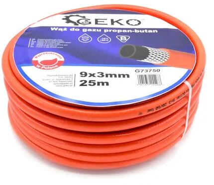 Propan-bután gázcső 9x3mm, 25m hosszúságú. Munkanyomás legfeljebb 20 bar. Szakítónyomás 60 bar. Működési hőmérséklet -10 és +50°C között. A termék rendelkezik tanúsítvánnyal a háztartási gázpalackok csatlakoztatásához.
