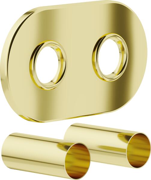 Mexen Round Radiator Valve Cover Kit, Gold Glossy, W905-000-50 A dupla, kerek, csöves rozetta készlet a radiátor lefedésére szolgál, alsó, kombinált, dekoratív csatlakozás. Csatlakozás PEX és rézcsövek szereléséhez. A rozetta 2 furattal rendelkezik a radiátor csatlakozások átvezetésére, 50 mm-es osztásközzel. Az 50 mm hosszú maszkoló hüvelyek 16 mm - PEX és 15,18 mm - r