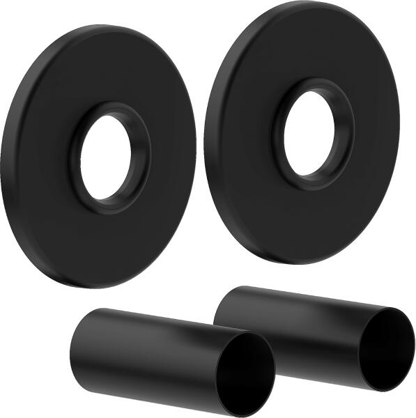 Mexen tartozékok, borító rozetta készlet, matt fekete, W904-000-70 Műszaki adatok: Rozetta anyaga: rozsdamentes acél Szín: fekete matt A rozetta külső átmérője: 65 mm Rozetta magassága: 6 mm Belső furat átmérő: 21 mm A tok anyaga: sárgaréz Ujj hossza: 50 mm Az ujjak belső átmérője: 20 mm A burkolatkészlet két különálló rozettából és karmantyúból áll, amelyek term