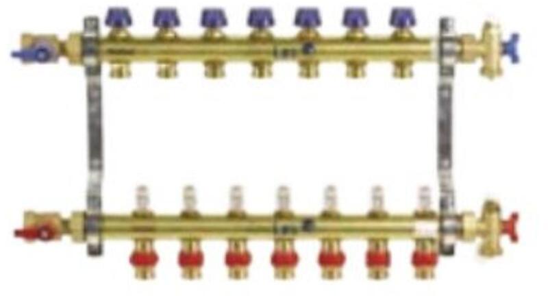 PIPELIFE RADOPRESS Osztó-gyűjtő 7 körös A 2-12 körös padlófűtési osztó-gyűjtő teljesen felszerelve, használatra kész állapotban kapható. Minden osztótest 1-os, körönként ¾-es eurokónuszos csatlakozásokkal és külső menettel ellátott az sztóvégeken. A víz és a radiátoros fűtési osztó kiegészítő szerelvények nélkül, míg a padlófűtési teljesen felszerelve,