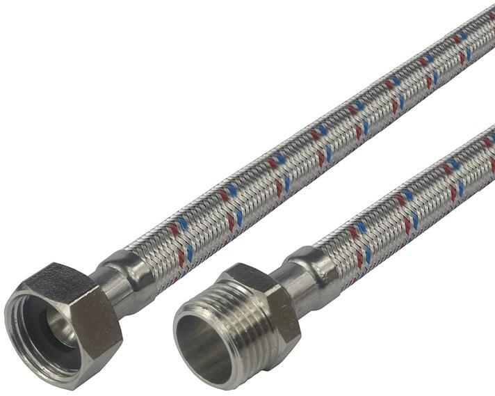 A rozsdamentes acél vízcsatlakozó tömlőket nagyon gyakran használják WC-k, tartályok, szabadon álló csapok és egyéb berendezések csatlakoztatására. A tömlők kiváló minőségű EPDM-ből készülnek, kiváló minőségű rozsdamentes acélból készült fonattal és nikkelezett sárgaréz idomokkal, belső és külső menettel az ISO 228 európai szabvány szerint. A rozsdamentes