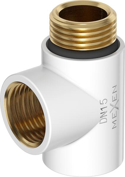 Mexen, T-idom fűtőelemhez fűtőrúdhoz 1/2", fehér, W906-000-20 Leírás: A T-idom a fűtőrúdnak a fűtőelemhez való csatlakoztatására szolgál a központi fűtési rendszerrel kombinálva. A szelepcsatlakozó készlettel kombinálva a visszatérő kimenet (visszafolyó) nem használatos, és a fűtőrúd áthalad a T-idomon. Műszaki adatok: Anyaga: sárgaréz Fehér szín Csatlakozási