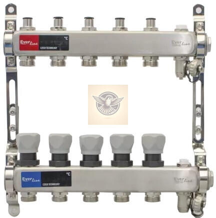 EVP-DSA3411/5 Szelepes osztó-gyűjtő, INOX 5 körös csatlakozóval eurokónuszos, 1x3/4 ROZSDAMENTES ACÉL elosztókészlet kézi levegőztetővel és 1" leeresztő szeleppel, 3/4" eurokónusz csatlakozási lehetőséggel(nem automata). Az eurokónuszt nem tartalmazza. Inox osztó-gyűjtő: Leírás és funkció Az inox osztó-gyűjtő a fűtési rendszerek egyik központi eleme, különösen p
