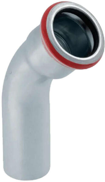 Geberit Mapress szénacél 45°-os ív idomok fűtési és oltóvíz rendszerkehez. Egyszerű és gyors telepítést tesznek lehetővé, csökkentve a munkaórákat és a költségeket. A telepítési idő jelentős csökkenése lehetővé teszi a projektek hatékonyabb menedzselését. Minden Mapress idomon van egy látványos jelölés, ami segít azonnali ellenőrzést végezni a préselés ut