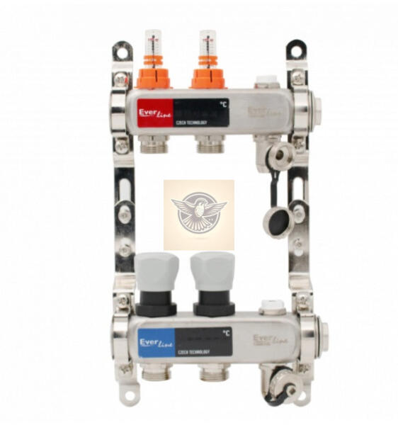 EVP-DSF3411/2 Áramlásmérős osztó-gyűjtő INOX 2 körös, beépített végelemmel, hőm. kijelzővel 1x3/4 Everline rozsdamentes osztó-gyűjtő áramlásérzékelővel 1″ A szett tartalma: Everline osztó-gyűjtő, egyenes golyóscsap, kézi légtelenítő töltő-üritő csap tartó Tulajdonságok: rozsdamentes test áramlásérzékelővel egyenes golyóscsappal méret: 1″BB csatlakozá