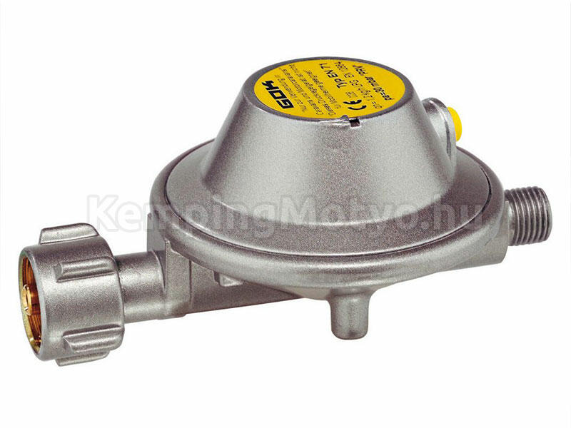 1/4'-os balos hollanderes, és német gázpalack csatlakozóval rendelkező beépíhető lakókocsi nyomáscsökkentő. 4 típus közül választhat. Minden típus alacsony nyomású szabályozó, biztonsági túlnyomásszabályozó lefújó szeleppel, vízállók, teljesítményük különböző. 1. típus (310711) jellemzői:Teljesítménye 0,8 kg/h. Nyomásmérő nélküli változat. Nyomása 3