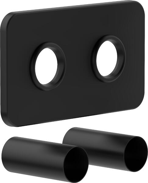 Mexen, négyzet alakú fedőkészlet radiátorszelepekhez, matt fekete, W910-000-70 A dupla, négyzet alakú, csöves rozetta készlet a radiátor lefedésére szolgál, alsó, kombinált, dekoratív csatlakozás. Csatlakozás PEX és rézcsövek szereléséhez. A rozetta 2 furattal rendelkezik a radiátor csatlakozások átvezetésére, 50 mm-es osztásközzel. Az 50 mm hosszú maszkoló hüvelye