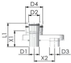 PPs/Alu osztó adapter 80/125 - 2x80D1=80 mm D2=80 mm D3=80 mm D4=125 mm L1=175 mm X1=105 mm X2=120 mm