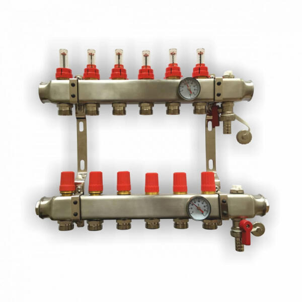 Tulajdonságok: Rozsdamentes acélból Áramlásmérővel Beépített Danfoss RA szelepekkel töltő-ürítő csapokkal fali tartóval kézi légtelenítővel és hőmérőkkel felszerelve Eurókonuszos csatlakozással 3/4" (eurókonusz nem tartozék) Osztótest csatlakozása: 1" belső menet