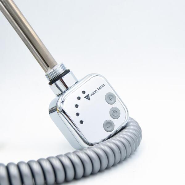 Fekete, 300 W-os digitális kijelzős fűtőpatron D profilú fűtőelem (A kép illusztráció) Radiátorainkkal kompatibilis és esztétikus megjelnést biztosít fürdőszobájában. Egyéni hőmérséklet kiválsztása 10-65 ◦C Turbó fokozat a gyors felfűtés érdékében. Fűtőpatron kiválasztásánál ügyeljen a radiátor teljesítményével való kompatibilitásra. Mellékelt táblá