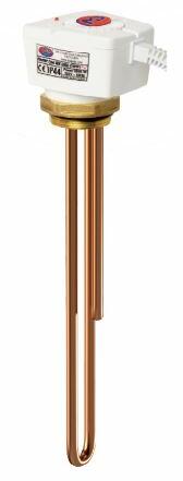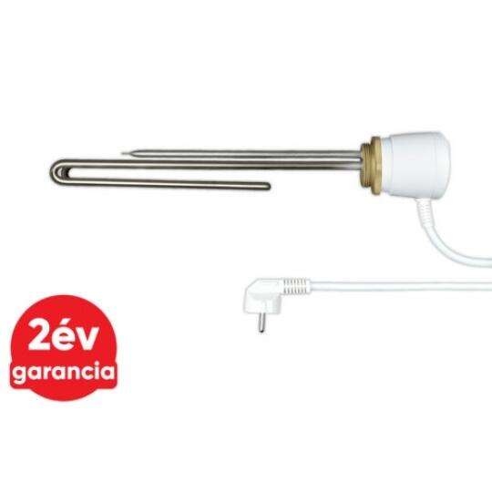 Eliko elektromos fűtőbetét beépített termosztáttal 3 kW 6/4 rozsdamentes, hőmérséklet érzékelővel 2 kW teljesítménnyel. A fűtőbetét 6/4"-es csatlakozással rendelkezik, telepítésre kész formában, tápkábellel és villás dugóval együtt szállított.