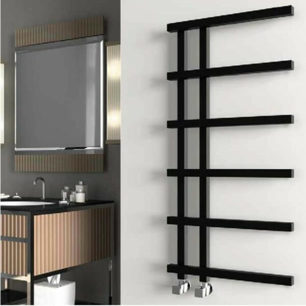 Műszaki adatok: Magasság (Y): (mm): 500 mm Szélesség (X): 500 mm: 1200 mm (szélesség (X)) Mélység: 103 mm A csatlakozások közötti távolság: 45 cm Függőleges vízcsatornák távolsága: 33,3 mm Szín: fehér RAL 9016 Anyaga: acél Üzemi hőmérséklet: max. 110 °C Maximális üzemi nyomás: 10 bar Maximális próbanyomás: 13 bar Fűtési teljesítmény: - 55/45/20 °C 857 W - 75/6