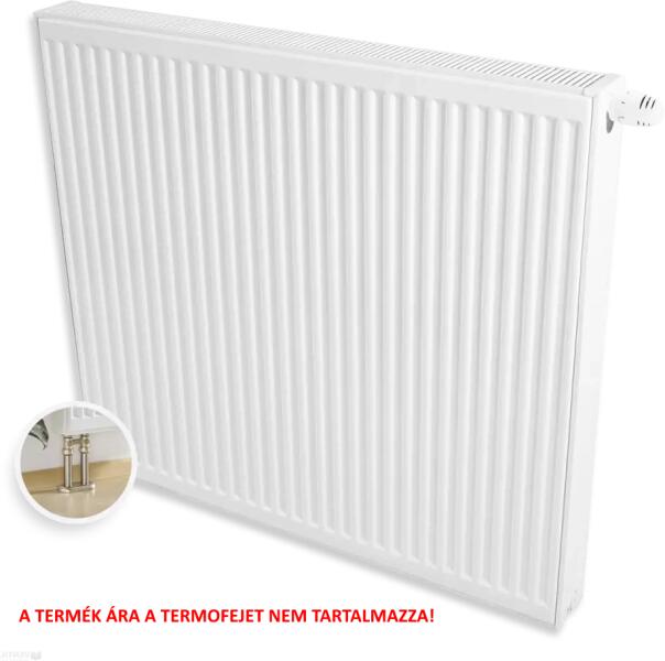 Acéllemez lapradiátor Magasság: 600 mm Szélesség: 1400 mm Mélység: 60 mm Víz tartalom: 3 l/m Súly: 21 kg Széles méretválaszték (11;22;33) Esztétikus kivitel Kiváló hőátadás Konvektorlemez: 0,5 mm Kétrétegű festés Alapozó festés: KTL II – második generációs kataforézis Végleges festés: Elektrosztatikus kezelés Működési nyomás: 10 bar Próba nyomás: 13 bar Csat