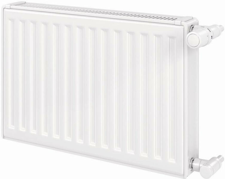 Acéllemez lapradiátor beépített szeleppel, Vogel&Noot, 22KV 300x600 jobbosA VOGEL & NOOT Vonova termékcsalád szelepes, multifunkciós fűtőtestjei korszerű és esztétikus megoldást kínálnak az épületek, otthonok felfűtésére. Esztétikus, mert a csatlakozások a radiátor alatt (jobb, vagy bal oldalon) vannak diszkréten elhelyezve, korszerű, mert a kv-előbeállított sze