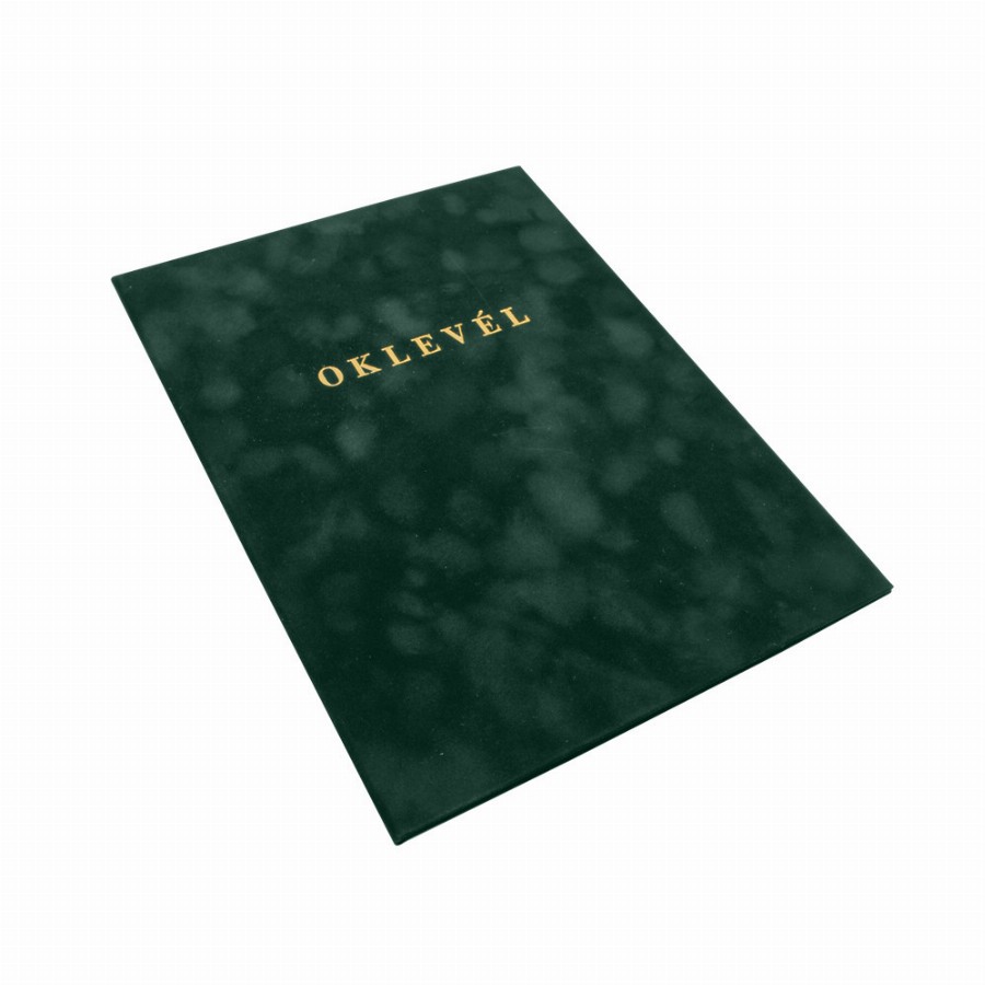 OKLEVÉLTARTÓ A4 PLÜSS BLUERING ZÖLD A4 méretű oklevelek tárolására alkalmas, plüss borítás, nyitott állapotban, jobb oldalon 4 szatén szalaggal. Borítón arany OKLEVÉL nyomattal méret: 233x312x7mm Katalóguskód: 44074 Hiteles tájékoztatás: Elkötelezettek vagyunk termékeink biztonságának garantálásáért, nyomon követjük a termékbiztonsággal kapcsolatos valamennyi eur