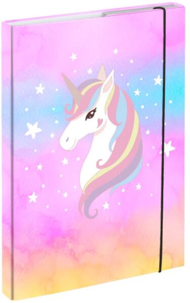Az egyszarvú motívumú A4-es füzettartó segítik a füzetek és könyvek védelmét és rendszerezését egy iskola táskában. Belső kiesés elleni füllel rendelkeznek, rugalmas szalaggal rögzítve. Méretek: 32 x 23 x 3 cmGyártó: Presco Group