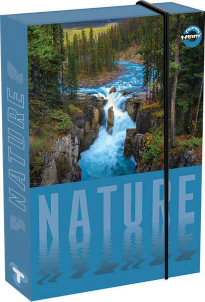 A4-es méretű füzetbox vadregényes folyó mintával. Gerince 4,5 cm vastag. Anyaga: kemény karton (1200 g-os) fényes fólia borítással, mely ellenállóvá teszi. Minőségi alapanyag, tetszetős design. Kiválóan alkalmas füzetek, tankönyvek tárolására. A T-Creatív design termékcsalád fiatalos, divatos arculatával minden iskolást megszólít. A grafikák sokszínűsége mellett