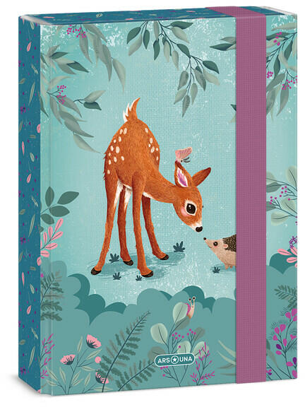 Ars Una A5 füzetbox My Secret Garden A/5 méretű füzetbox őzikés grafikával Tökéletes füzetek, iratok tárolására Kemény és tartós kartonból 4 cm-es gerincvastagsággal 7 mm-es gumipánttal zárható Méret: 160 x 220 x 35 mm