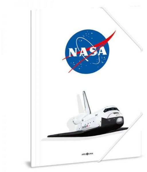 NASA logóval díszített, űrhajós mintájú A4-es méretű gumis mappa fiúknak, férfiaknak fehér alapon. Vastag kartonból készült, színes gumipánttal. Tartós, jó minőségű. Méret: 33x24 cm.