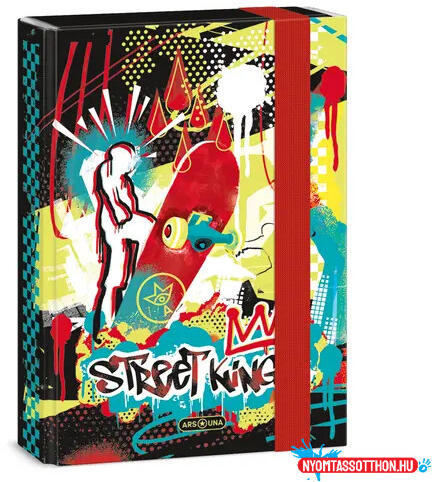 A/5 méretű füzetbox grafikával Kemény és tartós kartonból 4 cm-es gerincvastagsággal 7 mm-es gumipánttal zárható Füzetek, iratok tárolására tökéletes Méret: 160x220x35 mm