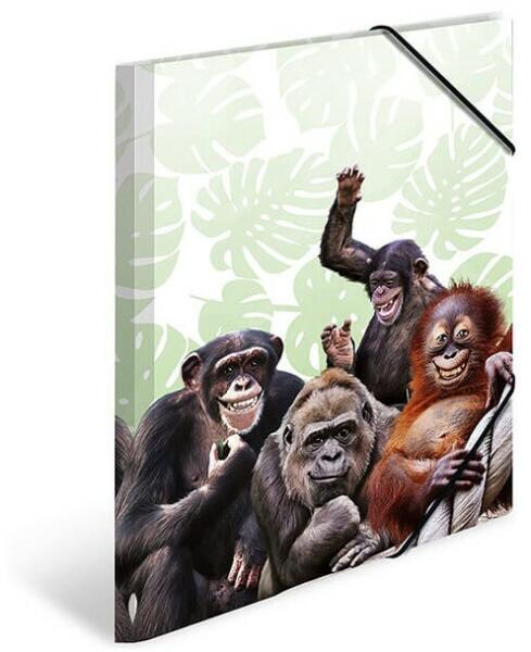 Kiváló minőségű, A4-es méretű MŰANYAG gumis mappa a HERMA-tól, mely egzotikus állatok sorozat mintájával díszített. Majombanda: pimasz, vicces és vad - csimpánz, gorilla, orángután. Az A4-es méretű mappa masszív polipropilénből, rugalmas sarkpántokkal és 3 nyomtatott mintás belső fedéllel készült. Nagyon tartós. Ideális választás dokumentumok tárolására, száll