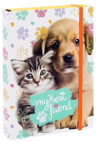 Jumbo A5 formátumú jegyzetfüzet doboz, gumiszalaggal záródik. Előnye a 3 edzett kartonból készült szárny, amely megvédi a notebookokat és könyveket a sérülésektől. Tartós, kiváló minőségű anyag. A füzetek és könyvek tárolására szolgáló minden iskolás felszerelés elengedhetetlen része.