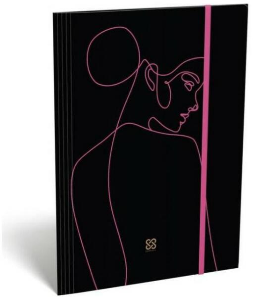Elegáns, letisztult és trendi! A4-es méretű A4-es méretű gumis mappa lányoknak, hölgyeknek. Mérete: 32,8x0,4x23,5 cm. Szín: fekete, rózsaszín vonal minta. Minőségi Lizzy Card termék. A Cornell Pink Line fekete-rózsaszín színvilága biztosítja a kifinomult eleganciát. A kollekción a trendi egyvonalas rajzolt arc motívum köszön vissza. Letisztult vonalvezetés, divatos színe