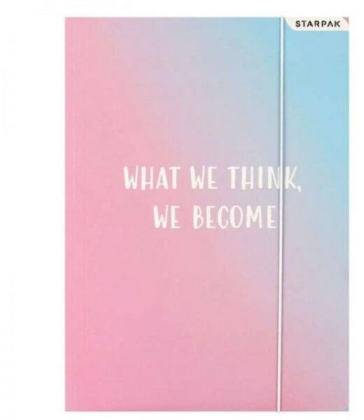 A4-es méretű gumis mappa pasztell színvilágban, What we Think we become felirattal. Remek választás kamaszoknak is. Tárolhatod benne rajzaidat, jegyzeteidet. Anyaga: laminált karton. Strapabíró. Színe: rózsaszín/kék átmenetes.
