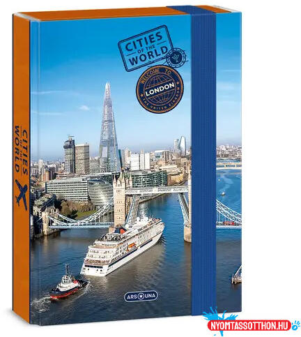 A/5 méretű füzetbox grafikával Kemény és tartós kartonból 4 cm-es gerincvastagsággal 7 mm-es gumipánttal zárható Füzetek, iratok tárolására tökéletes Méret: 160x220x35 mm