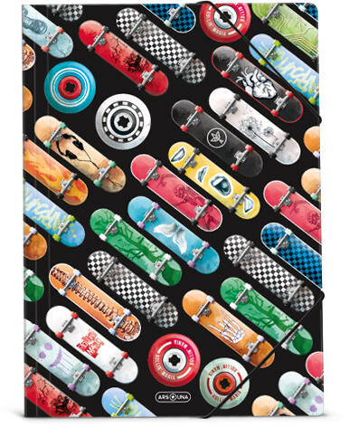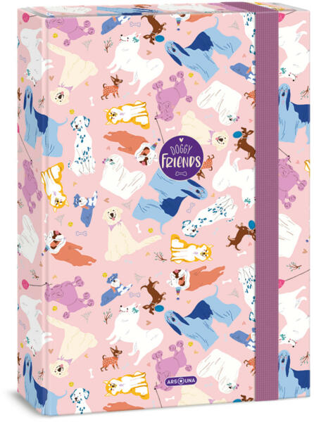 Jegyzetfüzet doboz A5-ös formátumban. Megvédi a füzeteket, könyveket, papírokat és egyéb iskolai felszereléseket a sérülésektől. A zárás elasztikus szalaggal van ellátva.