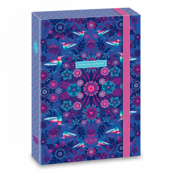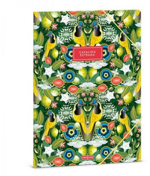 Catalina Estrada illusztrátor különleges madaras grafikájával díszített A4-es méretű gumis mappa, akár tiniknek, felnőtteknek is. Vastag kartonból készült, színes gumipánttal. Méret: 33x24 cm. Tartós, kiváló minőségű Ars Una termék. Catalina Estrada illusztrátor munkáiban a dél-amerikai folklór legszebb motívumai élednek újjá, mely tükrözi a gazdag kultúra széps