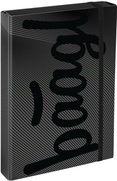 A/4 méretű füzetbox. Külseje matt fóliával és 3D dombor formalakkal. Kemény és tartós kartonból, 7 mm vastag gumipánttal. Belseje fehér színű. Füzetek, iratok tárolására vagy táska helyett is alkalmas. Méret:230x335x45 mm