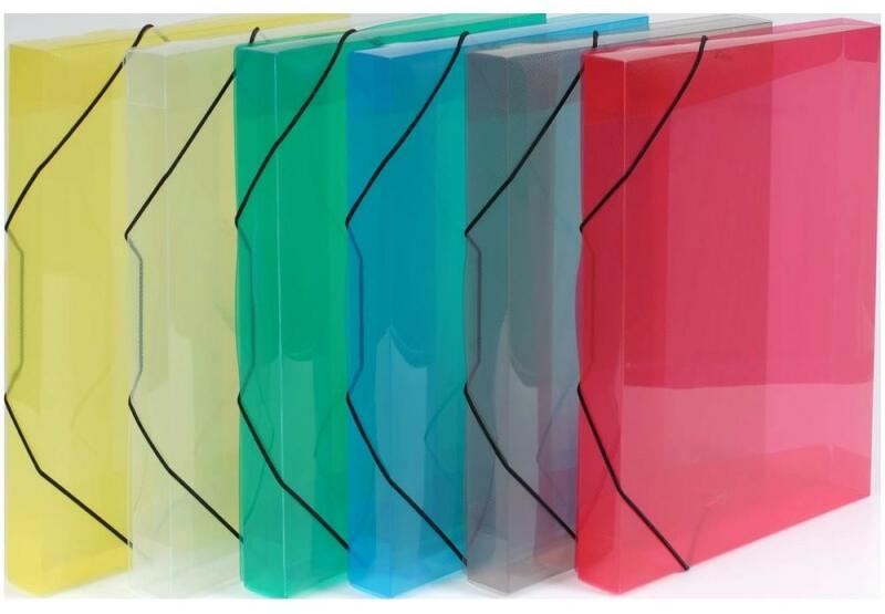 A/4 méretű füzetbox. Kemény, tartós kartonból, 4 cm-es gerinccel, fényes fóliával, 7 mm széles gumipánttal. Belseje egy színnel nyomott. Füzetek, iratok tárolására .