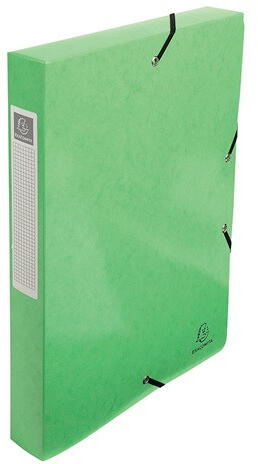 Füzetbox karton Exacompta Iderama A/4 40 mm gerinccel gumis ánizszöld Méret: A/4 Gerincméret: 40 mm Szín: ánizszöld műanyag fóliával borított prespán füzetbox, mely ötvözi a prespán előnyeit (környezetbarát, erős) a PP szakadástűrő és nedvesség- gátló tulajdonságaival ragasztott gerinccímkével