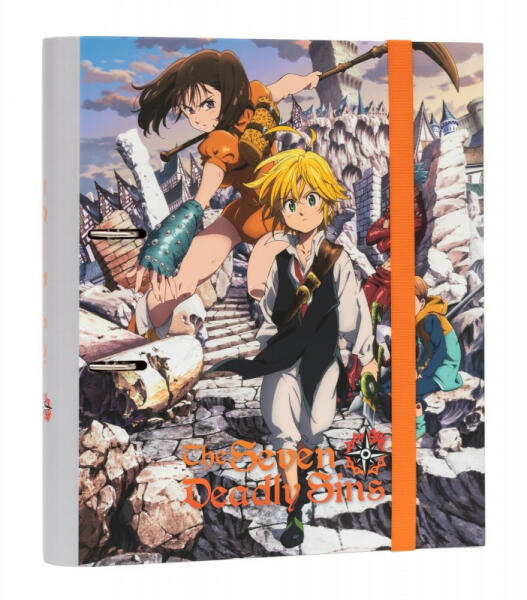 Gyűrűs mappa A4-s két gyűrűs - The Seven Deadly Sins Manga Gyűrűs mappa A4 - Manga rajongók számára tökéletes választás ez a gyűrűs mappa, amin a Hét főbűn film szereplői láthatók akció közben. Te is csatlakozz a csapathoz és védd meg irataidat, mint egy hős lovag! A strapabíró gyűrűs mappa kemény borítója 2mm vastag karton anyagból készült, belseje pedig 150 g