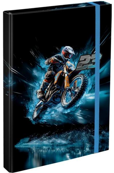 A/4 méretű füzetbox motorkerékpár grafikával alsósoknak és felsősöknek. Füzetek, iratok tárolására tökéletes. Kemény és tartós kartonból3 cm-es gerincvastagsággal9 mm-es gumipánttal zárható Méret: 32x23x5 cm