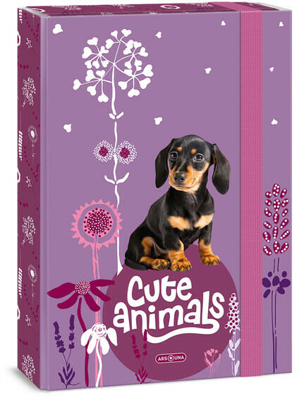 Ars Una A4 füzetbox Cute Animals-puppy A/4 méretű füzetbox vidám, kiskutyás grafikával Kényelemes tároló, munkafüzetek, rajzok, iratok számára Szuperül véd a gyűrődésektől Akár táska helyett is használható Anyaga: kemény, tartós karton 7 mm vastag, erős gumipánttal zárható Méret: 230 x 335 x 45 mm