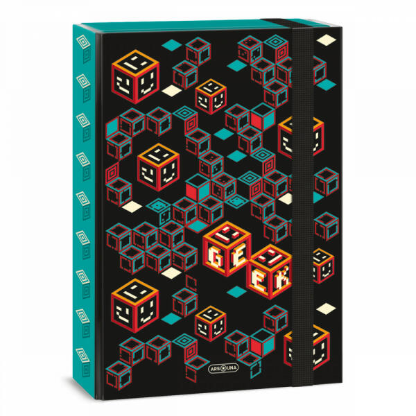 A/5 méretű füzetbox vagány, gamer grafikával alsósoknak és felsősöknek. Füzetek, iratok tárolására tökéletes. Kemény és tartós kartonból4 cm-es gerincvastagsággal7 mm-es gumipánttal zárható Méret: 160x220x35 mm