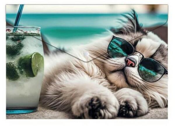 Igazán nyári hangulatú, mókás napszemüveges cicás mintájú patentos irattartó tasak A5-ös iratok, dokumentumok tárolására. A patent segítségével könnyen záródik. Anyaga: PP polipropolén (műanyag), 180 mikron.