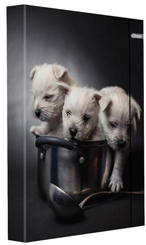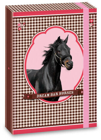 A/4 méretű füzetbox. Külseje matt fóliával és 3D dombor formalakkal. Kemény és tartós kartonból, 7 mm vastag gumipánttal. Belseje fehér színű. Füzetek, iratok tárolására vagy táska helyett is alkalmas. Méret:230x335x45 mm