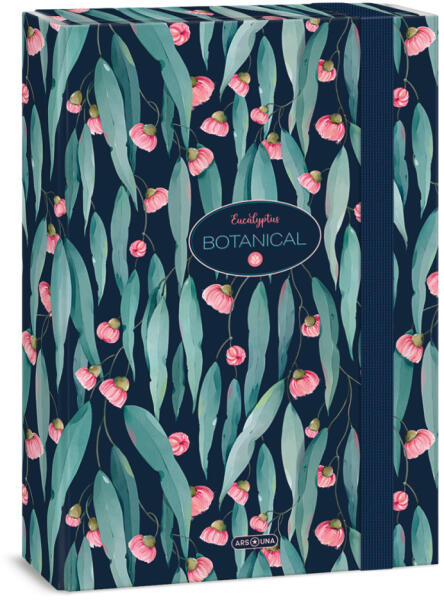 A/4 méretű füzetbox. Kemény, tartós kartonból, 4 cm-es gerinccel, fényes fóliával, 7 mm széles gumipánttal. Belseje egy színnel nyomott. Füzetek, iratok tárolására .