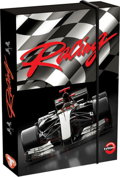 A4-es méretű füzetbox versenyautós mintával, fiúknak. Gerince 4,5 cm vastag. Anyaga: kemény karton (1200 g-os) fényes fólia borítással, mely ellenállóvá teszi. Minőségi alapanyag, tetszetős design. Kiválóan alkalmas füzetek, tankönyvek tárolására. A T-Creatív design termékcsalád fiatalos, divatos arculatával minden iskolást megszólít. A grafikák sokszínűsége mell