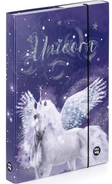 A4-es méretű füzettartó unicorn motívummal, szegecsekkel megerősítve. A gerinc szélessége 3 cm. Méret: 32 x 22,5x3 cmGyártó: Karton P+P