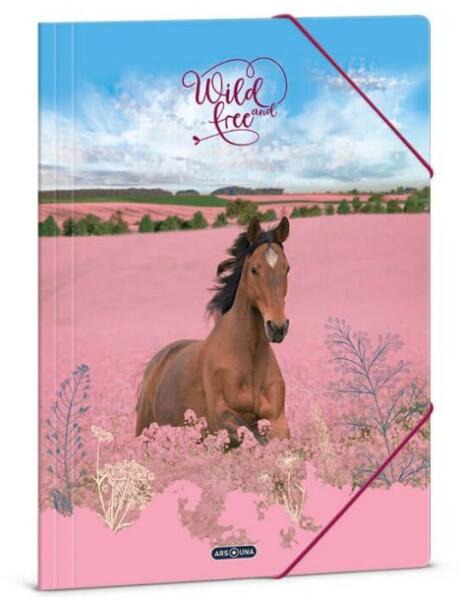 Szép barna lovas mintájú, A4-es méretű gumis mappa lányoknak. Kemény, tartós kartonból készült. Vastag kartonból készült, színes gumipánttal. Tartós, jó minőségű. Méret: 33x24 cm. Minőségi Ars Una termék. A szép lovas mintájú Ars Una - Wild and Free teljes kollekció itt tekinthető meg>>