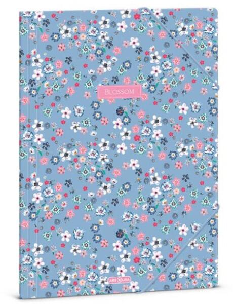 A4-es méretű, világoskék, apró rózsaszín virágos mintájú gumis mappa lányoknak, hölgyeknek. Kemény, tartós kartonból készült. Vastag kartonból készült, színes gumipánttal. Tartós, jó minőségű. Méret: 33x24 cm. Minőségi Ars Una termék. Az Ars Una Pearl Blossom Blue virágos teljes kollekció itt tekinthető meg