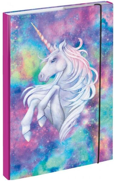 Egyszarvú motívummal ellátott füzettartó az A4-es méretű füzetek és könyvek tárolására. A füzettartó lapjai lamináltak és gumival vannak ellátva, amellyel a füzattartót be lehet csukni. Méretek: 32 x 22,5 x 3 cm Gyártó: Presco Group