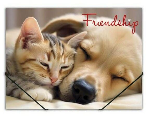 Aranyosn kutyás - macskás mintájú műanyag gumis mappa A4-es méretben. Tartósága miatt praktikus dokumentumok, iratok tárolására. A gumipántos mappa anyaga rugalmas polipropilén. Mérete: A4